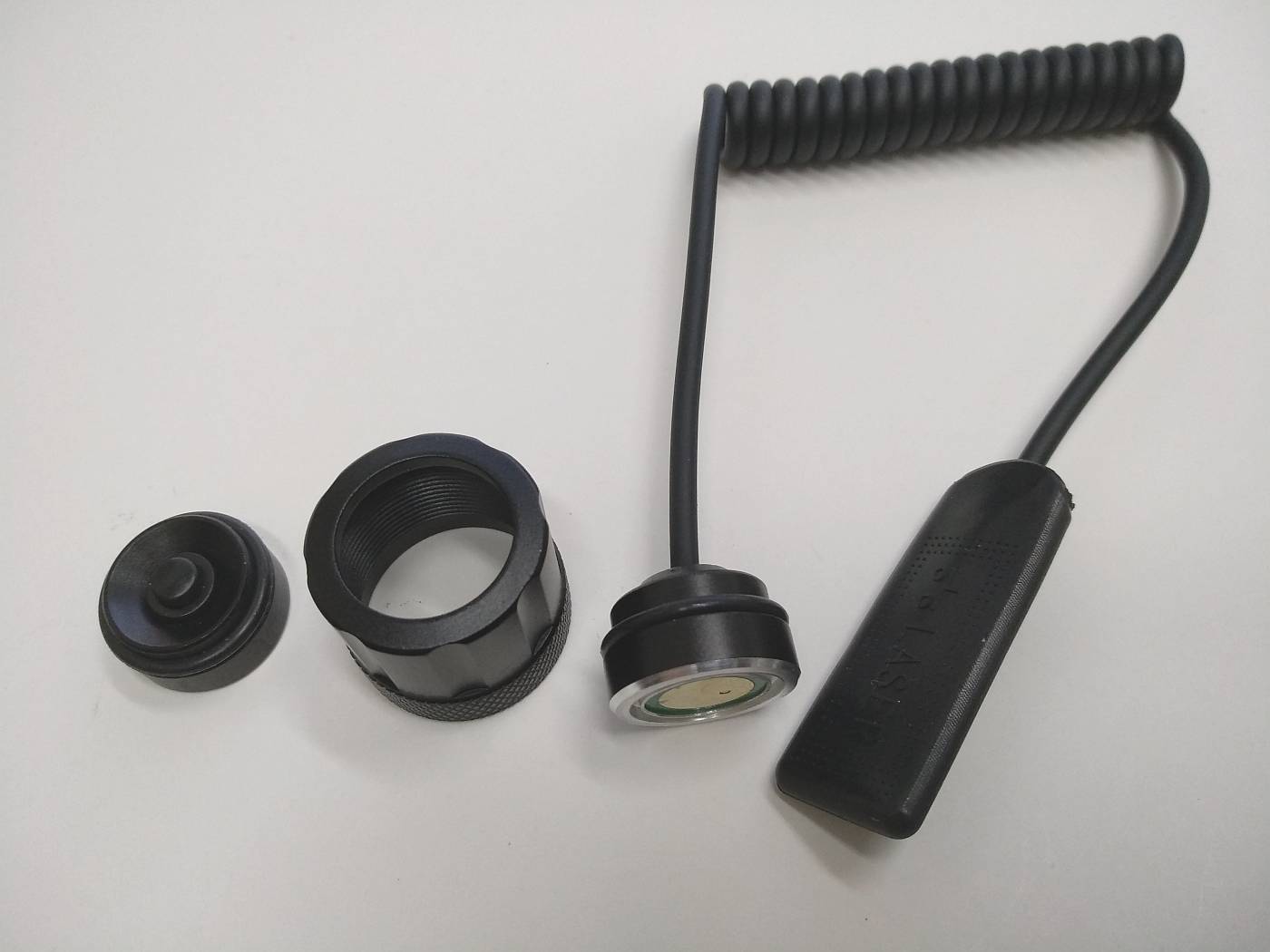 pressure switch for weapon use (press black tongue to turn on), the ring in the middle is